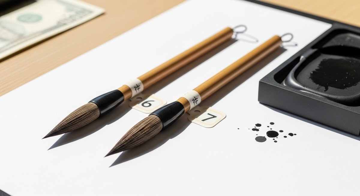 予算が限られる場合は合毛や白毛の混合筆がコストパフォーマンスに優れます。練習用や学校用として十分な性能を持っています。予算に余裕がある場合は純毛の狼毛や上質な羊毛を選ぶと書き味が向上します。