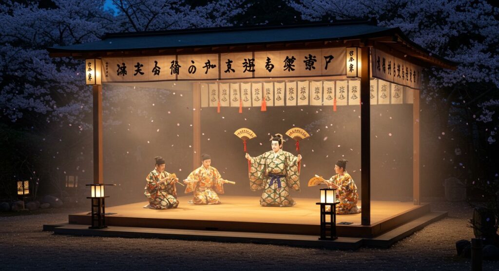 能東北の物語や成立背景、和泉式部の霊が描かれる伝説、春の梅の香りが演出する幻想的な世界観を詳しく紹介します。主要人物や演出、鑑賞ポイント、他演目との比較も網羅します。 -
