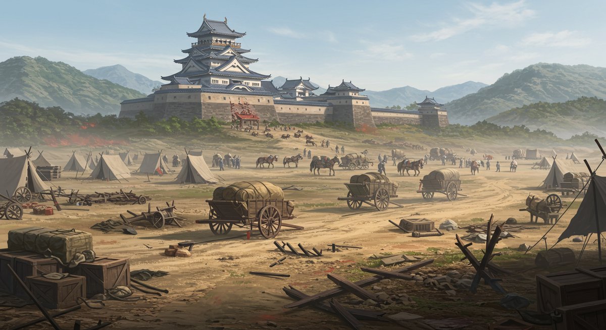 導入:兵糧攻めは軍事戦術の一つで、敵の食料や補給を断つことで消耗させ、降伏や撤退を促す方法です。直接戦闘で相手を打ち負かすのではなく、時間と補給を制することで優位に立ちます。戦略的に長期戦を想定する必要があり、成功すれば戦力をほとんど消耗させずに勝利が得られる点が特徴です。