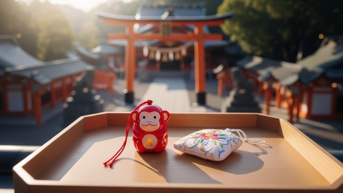 日枝神社には、神様の使いである猿(まさる)をモチーフにした、可愛らしくも力強い授与品がたくさんあります。
