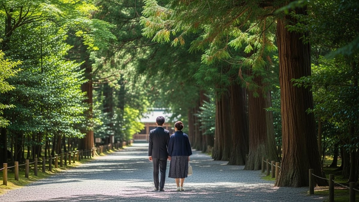具体的には、男性はジャケットとネクタイの着用が必須であり、女性も露出を抑えたスーツやワンピースが基本です。神聖な場所である御垣内には白砂利が敷き詰められており、その白さに映えるような、清潔感のある落ち着いたスタイルが理想的です。自分を美しく見せるためのファッションではなく、神様の前に出るための「礼服」としての意識を持つことが、この線引きの重要なポイントとなります。