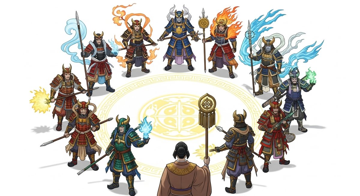 ゲームでは能力の数値化やスキル設計が重要です。各天将に固有のアクティブスキルやパッシブ効果を与えて、戦略的な役割分担を明確にします。