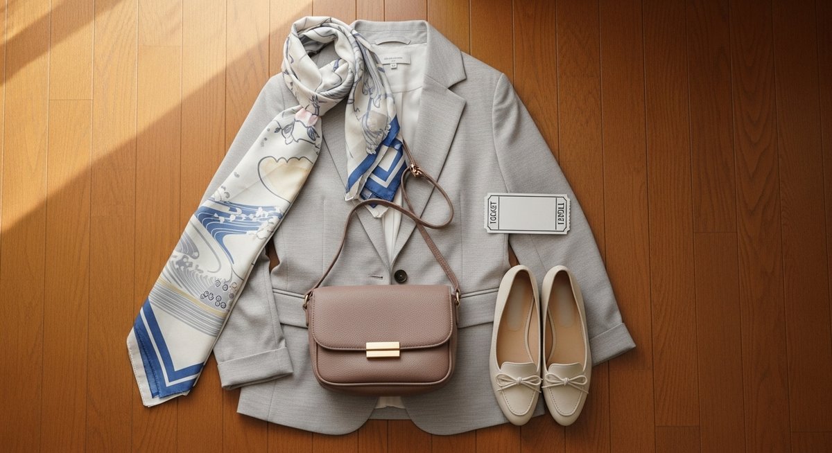 仕事が終わってから急いで劇場に向かう場合、着替える時間が取れないことも多いでしょう。そんな時は、いつものビジネススタイルに少しだけ「ハレ」の要素を加える小物を活用するのがコツです。例えば、地味なスーツでも、少し華やかなスカーフを巻いたり、パールのネックレスやブローチを足したりするだけで、一気に観劇にふさわしい雰囲気になります。