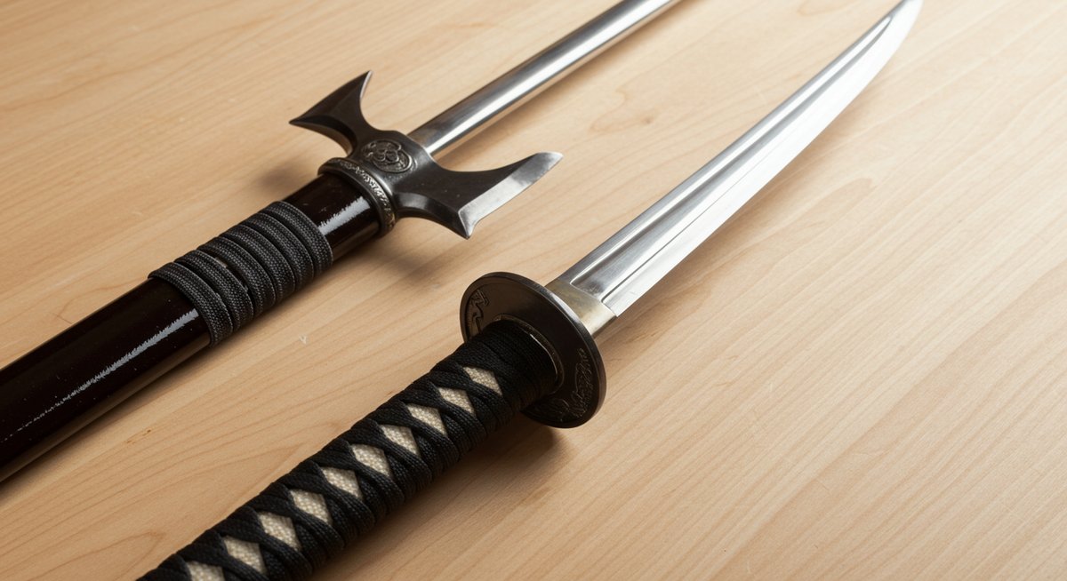 拵え(こしらえ)は柄の材質や握りの太さ、鍔の有無などを含みます。長刀は鍔や鞘のデザインが控えめで機能重視の拵えが多く、重心は比較的柄寄りに配置されるため素早い操作がしやすいです。