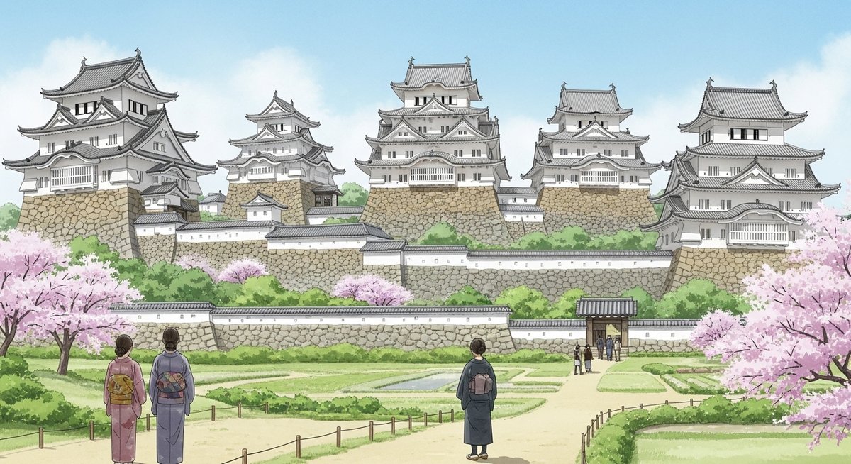 姫路城は白鷺城の愛称で知られ、白い漆喰壁と優雅な天守群が特徴です。戦国時代から江戸時代にかけて拡張され、現在の姿は江戸時代初期の大規模な改修によるものです。1993年には世界文化遺産にも登録され、その保存状態の良さが高く評価されています。