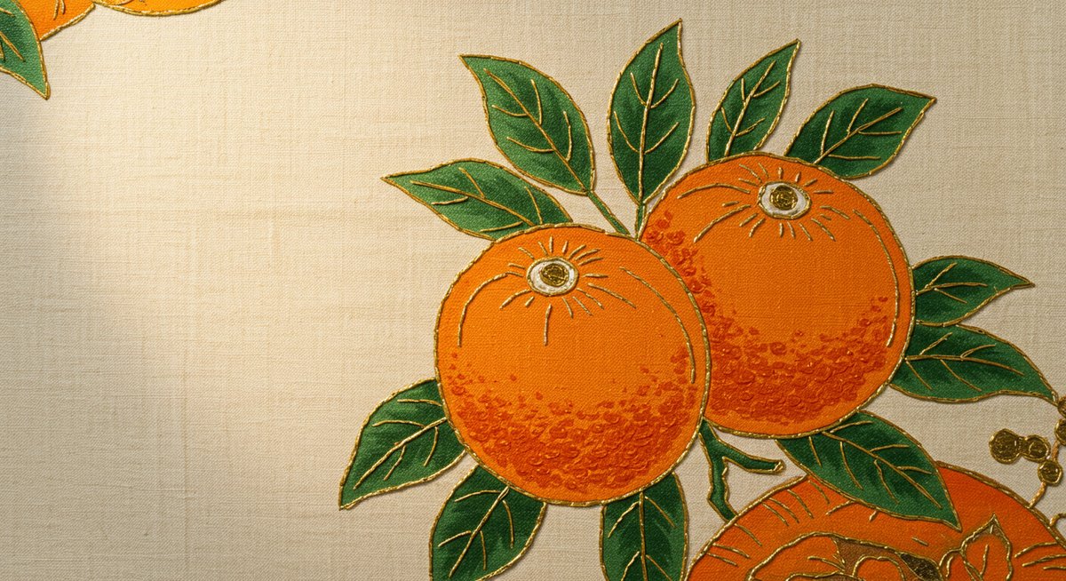 橘紋の細部、特に葉数や実の描写は系譜や流派の違いを示す手掛かりになります。葉の数が多いデザインは繁栄や豊穣を示す象徴的表現とされることがあり、反対に簡略化された図案は古風さや簡潔さを示す場合があります。